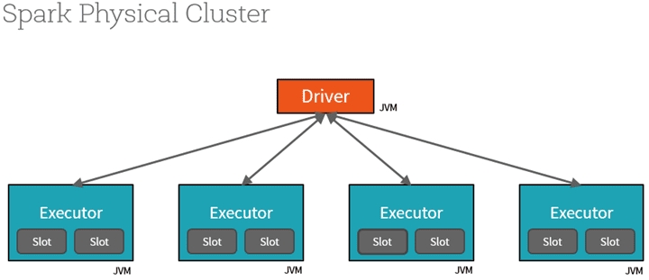 Spark Cluster A collection of machines or nodes in the cloud or on-premise in a data center on which Spark is installed. Among those machines are Spark workers, a Spark Master (also a cluster manager in a Standalone mode), and at least one Spark Driver.